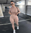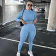 Stay stylish and comfortable this autumn with this versatile two-piece set, featuring a high-waist crop top and leggings combination.